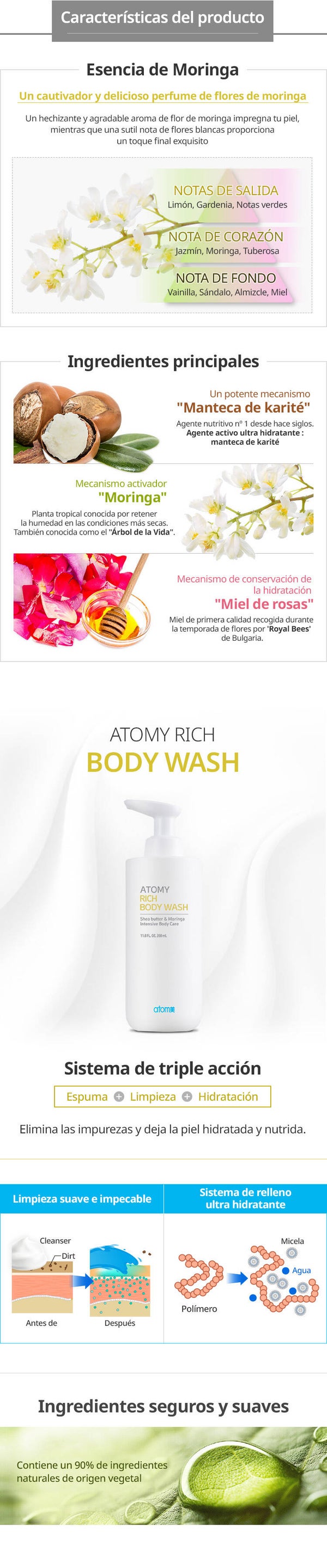 Agradable aroma de flor de moringa con una sutil nota de flores blancas. Contiene un 90% de ingredientes naturales de origen vegetal.