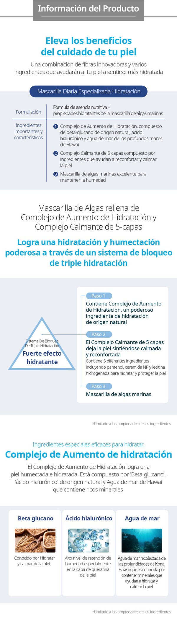 Mascarilla hecha de algas marinas con alto nivel de adherencia para una piel cada día más bella.