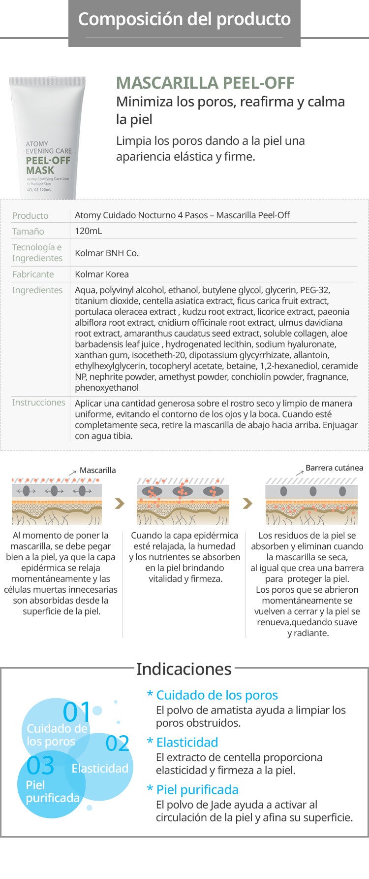 Limpia los poros dando a la piel una apariencia elástica y firme.- Cuida los poros.- Proporciona elasticidad y firmeza.- Piel purificada.