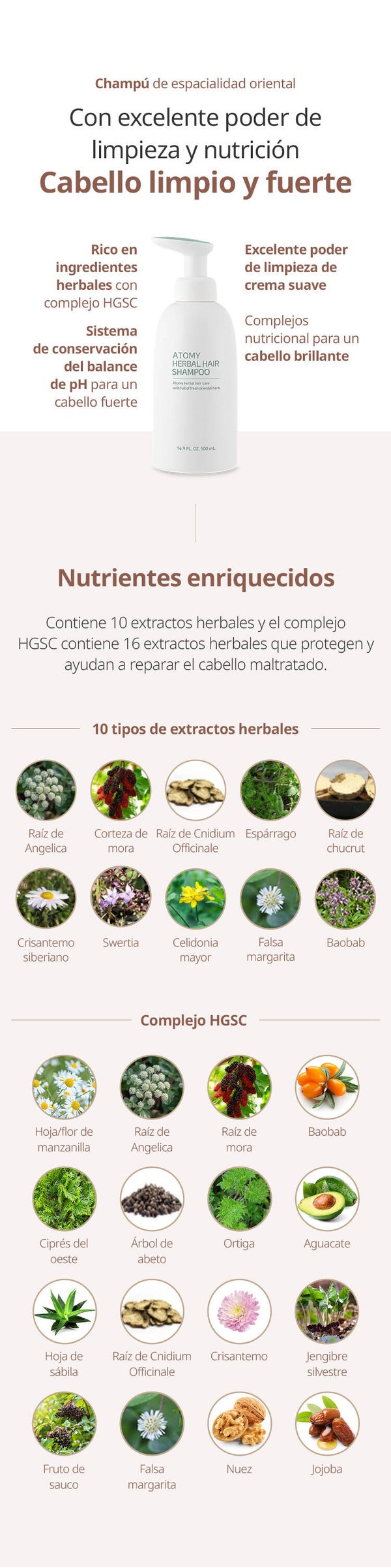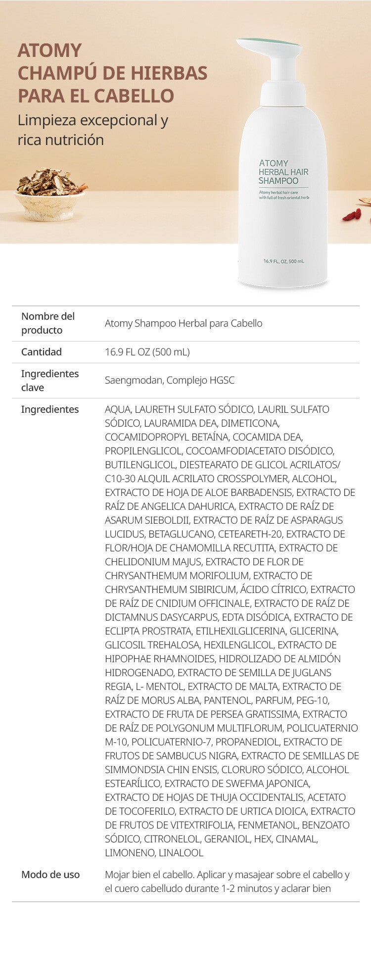 - Rico en ingredientes herbales.- Excelente poder de limpieza.- Balance del PH.- Cabello brillante.