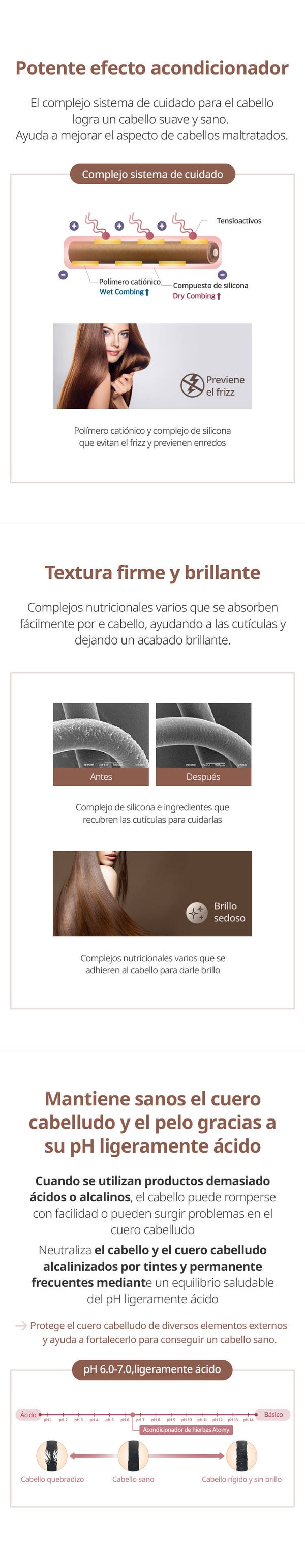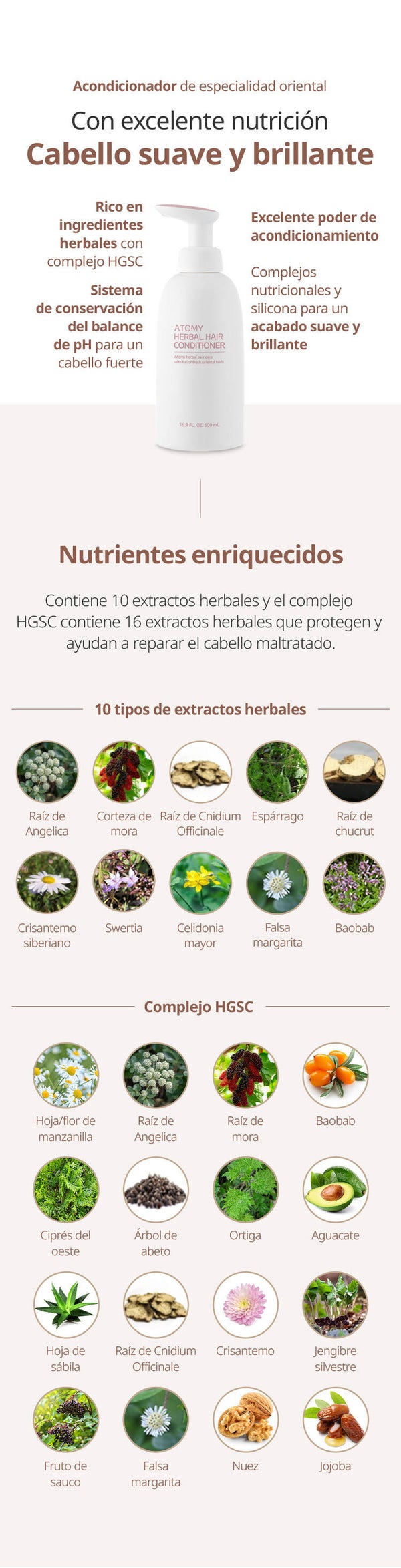 - Rico en ingredientes herbales.- Excelente poder de acondicionamiento.- Balance del PH.- Acabado suave y brillante.